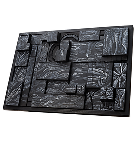 Drawing geometric designs on burnt, engraved wood, the observer measures lived experiences. The work explores hidden emotions, revealing life's truths, joys, and the sharp contrast between light and darkness.